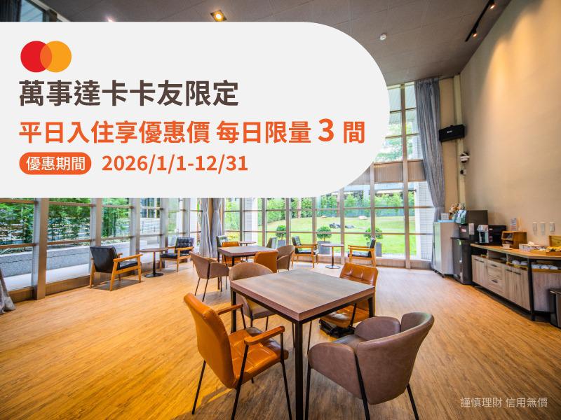3.持卡人於「北捷行旅」官網使用萬事達卡訂房並支付訂金,入住時結帳出示萬事達卡並以該卡支付尾款,即可享本優惠。