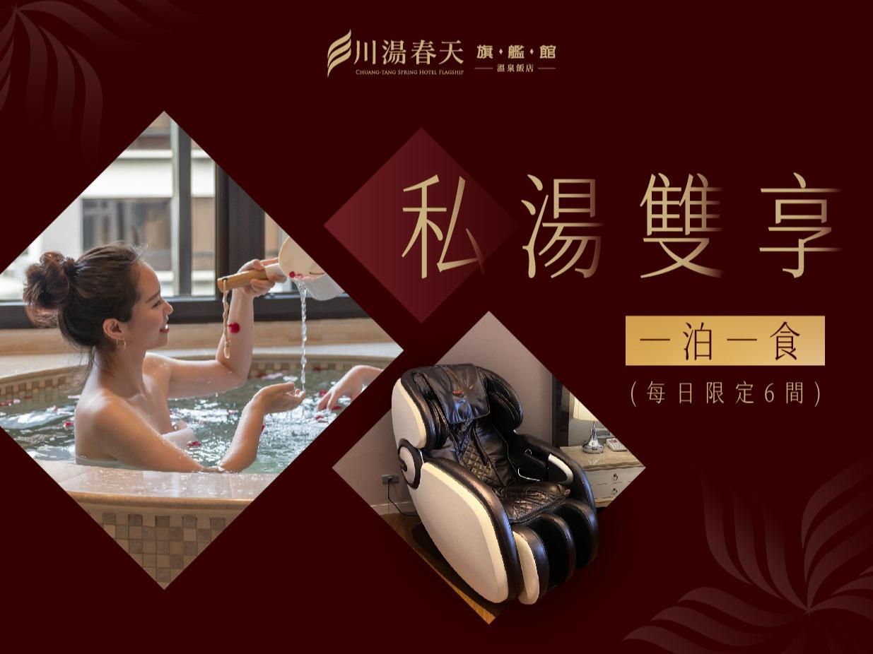 專案內容[依房型人數提供]: 頂級客房住宿一晚。 享享自助百匯早餐。 房內冷熱雙湯池。 房內附Tokuyo vogue時尚玩美按摩椅。 免費使用SPA露天風呂(請自備泳裝、泳帽)。 免費使用卡茲童樂園。 飯店至礁溪轉運站接駁服務。 提供免費Wi-Fi。 提供免費停車場。