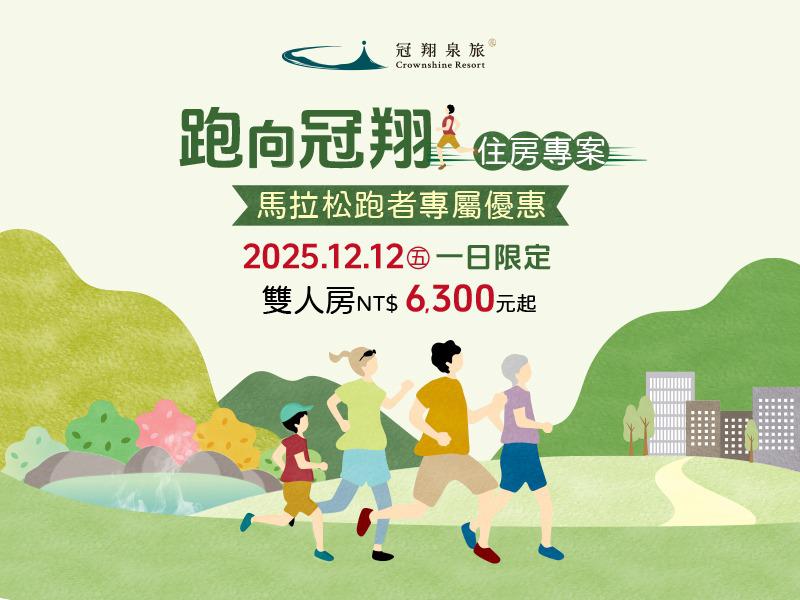 凡持『2025 礁溪馬拉松-跑者布旗』至礁溪冠翔泉旅入住12/12一日限定,可享每房現折500 元優惠折扣。(官網價格已折扣)