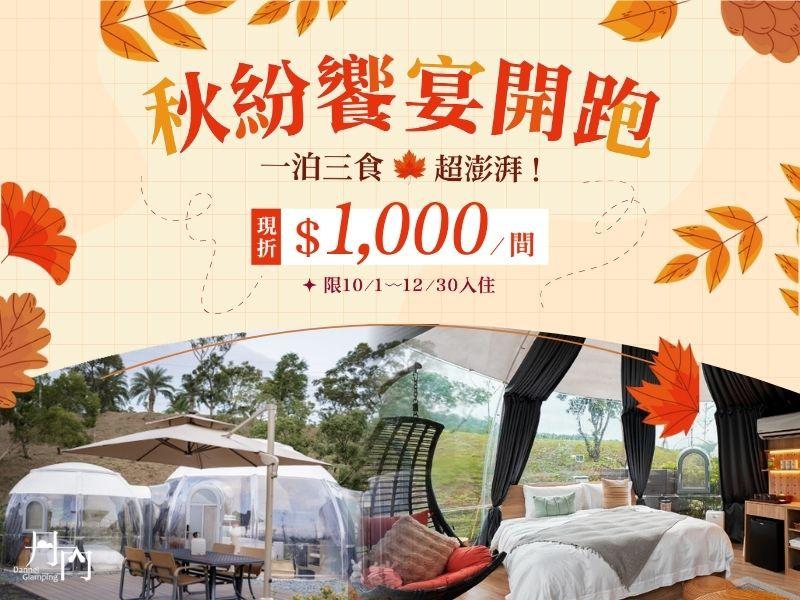 丹內丹內野奢莊園推出秋季限定【秋紛饗宴】,讓你住進星空帳篷,享受三餐美食,悠遊大自然∼現在訂現折 $1,000/間,錯過可惜!