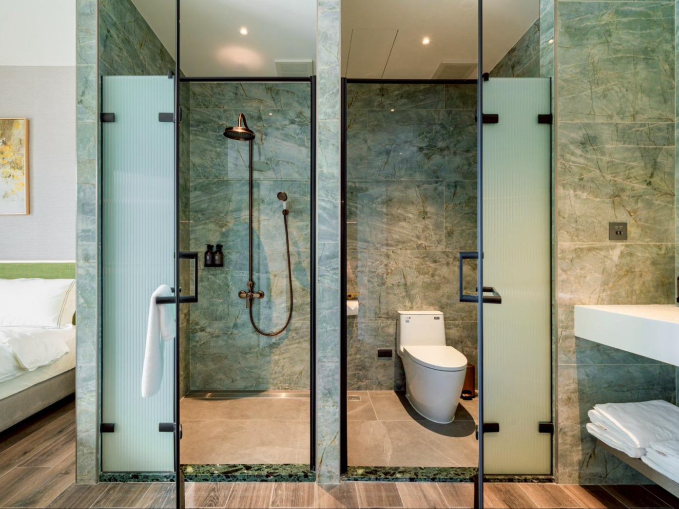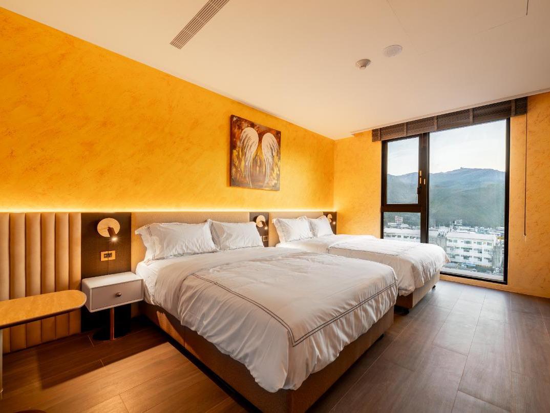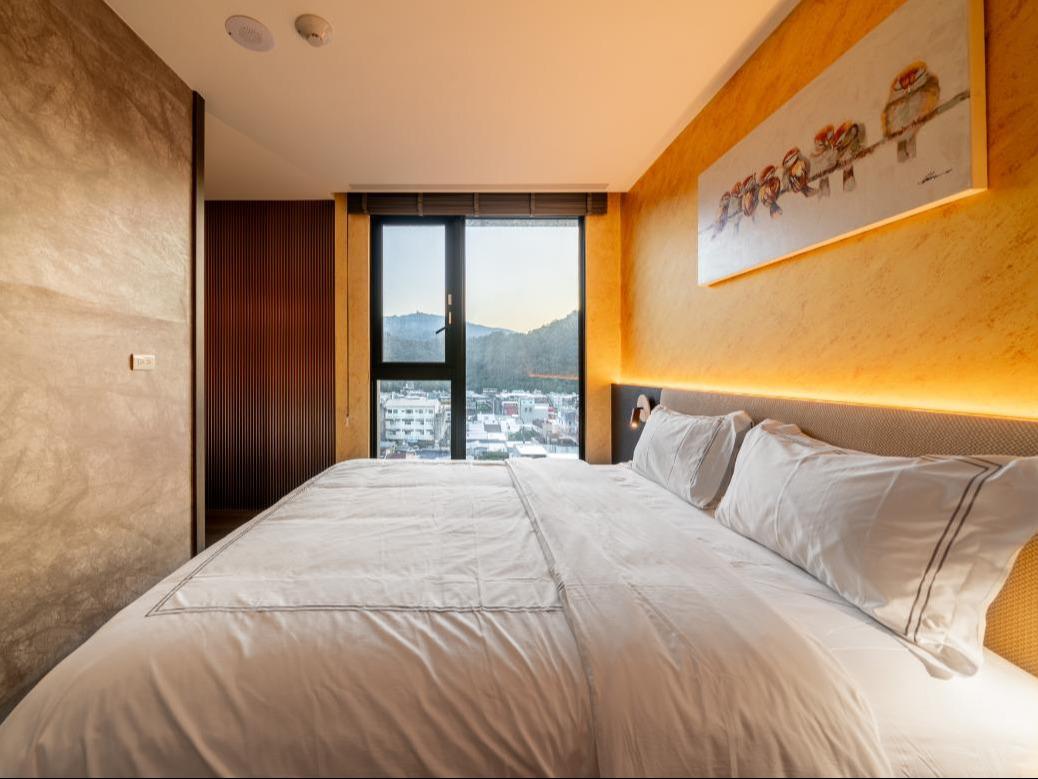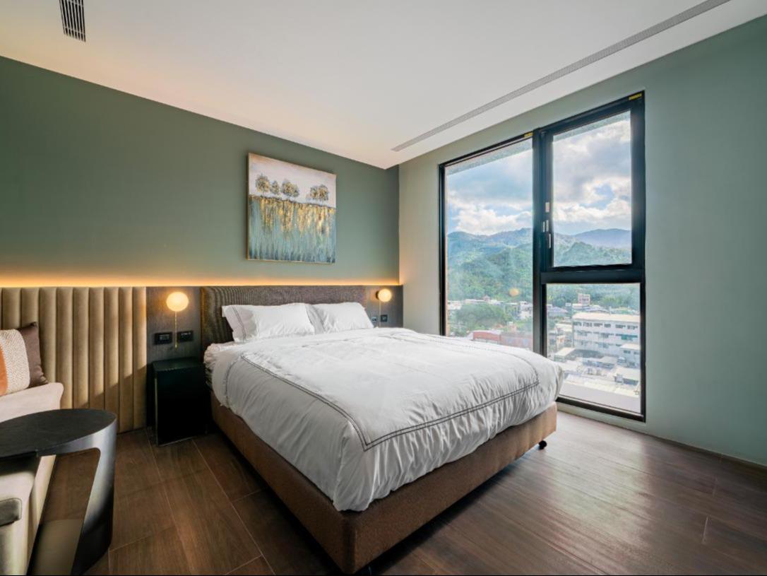 位於本館最邊間的「金軌天際房」,是為了熱愛山城與鐵道的旅人所設計的專屬房型。採用超大面積的環景落地窗,讓您無需起身,便能一覽無遺整段蜿蜒於山間的鐵道全景。