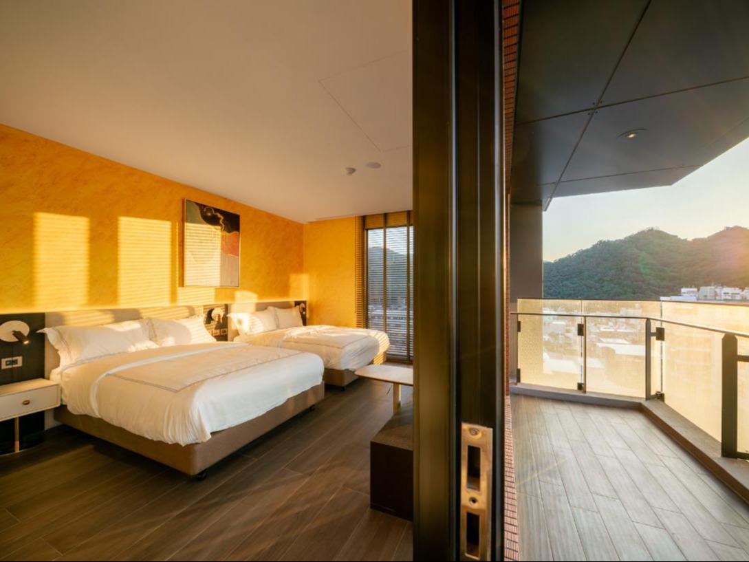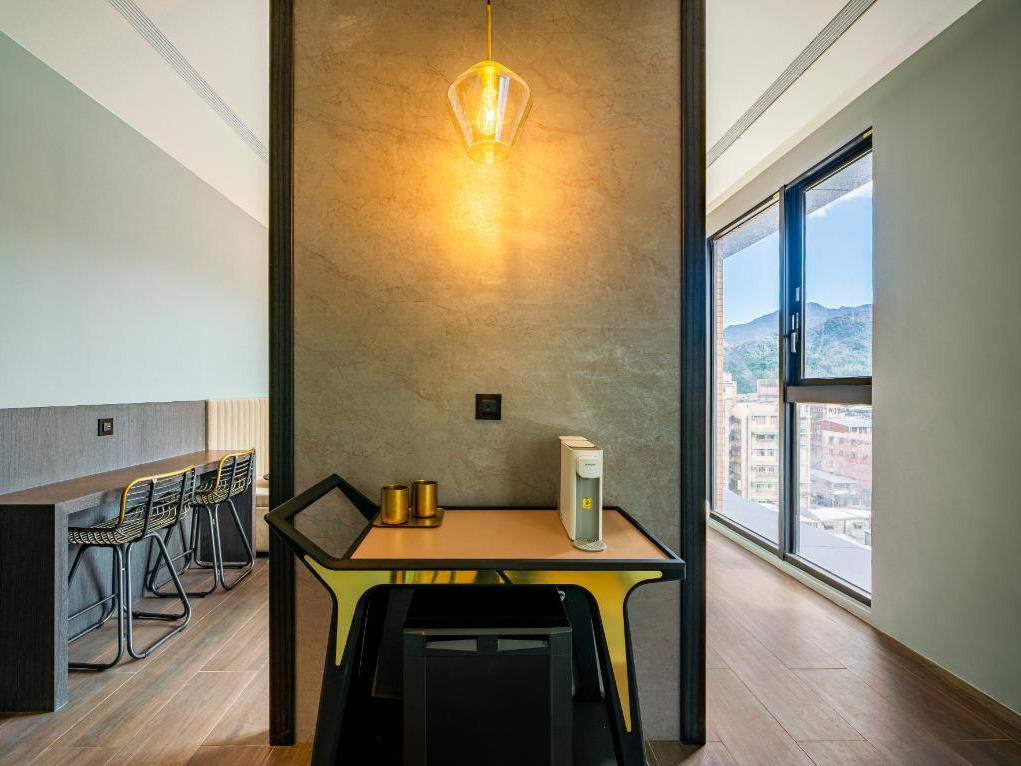 在光影交織的「金軌」房型中,我們將九份的繁華歷史與窗外的山色鐵道完美融合。房內設計融入了金屬質感的軌道線條,象徵著昔日運礦的輝煌與鐵路的延伸感,指引著旅人的視線望向遠方。