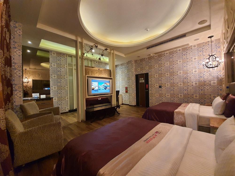 ZOD(免付費電影觀賞)、迎賓飲料、迎賓點心、瓶裝飲用水、免費WIFI、獨立空調、大理石或玻璃纖維雙人泡澡浴缸、55吋液晶電視、區分適合家庭加床休息區客房與歡唱設備客房兩種