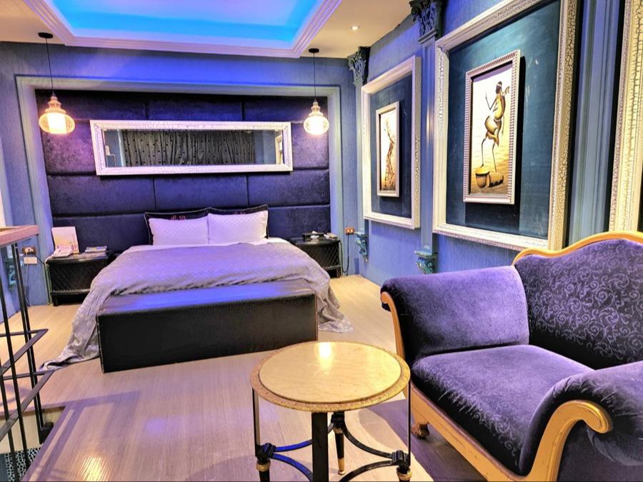 為館內標準車庫房型,坪數大約10∼12坪,一張加大雙人床,分為樓中樓與部分平面房型!