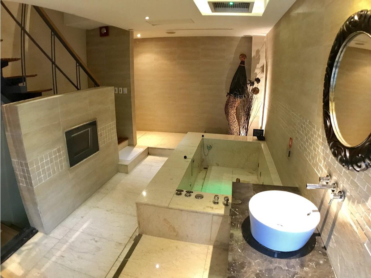 為館內高級家庭車庫房型,坪數大約14∼16坪,一張特大雙人床,加一個臥榻,分為樓中樓與部分平面房型!