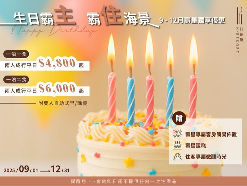 【☺生日霸主☺HAPPY BIRTHDAY】一泊二食 壽星專案 (六人套房)