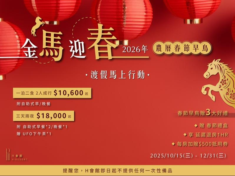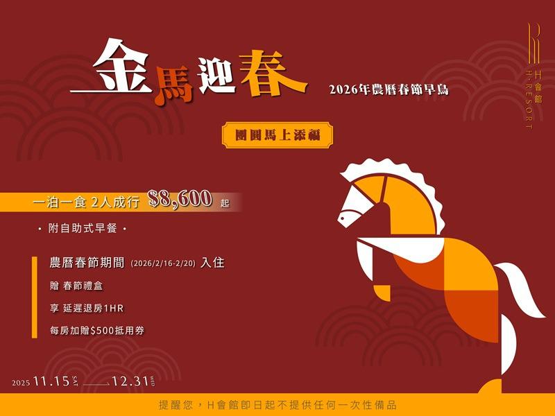 【春節早鳥一泊一食專案】金馬迎春 春節客房專案 (四人房)