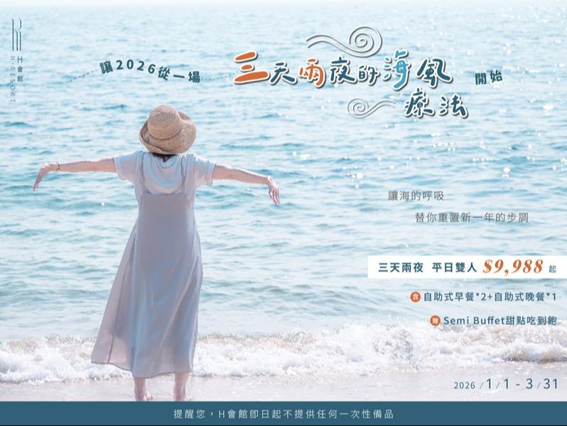【2026 從一場三天兩夜海風療法 開始】三天兩夜 優惠(1~3月) (兩小床)