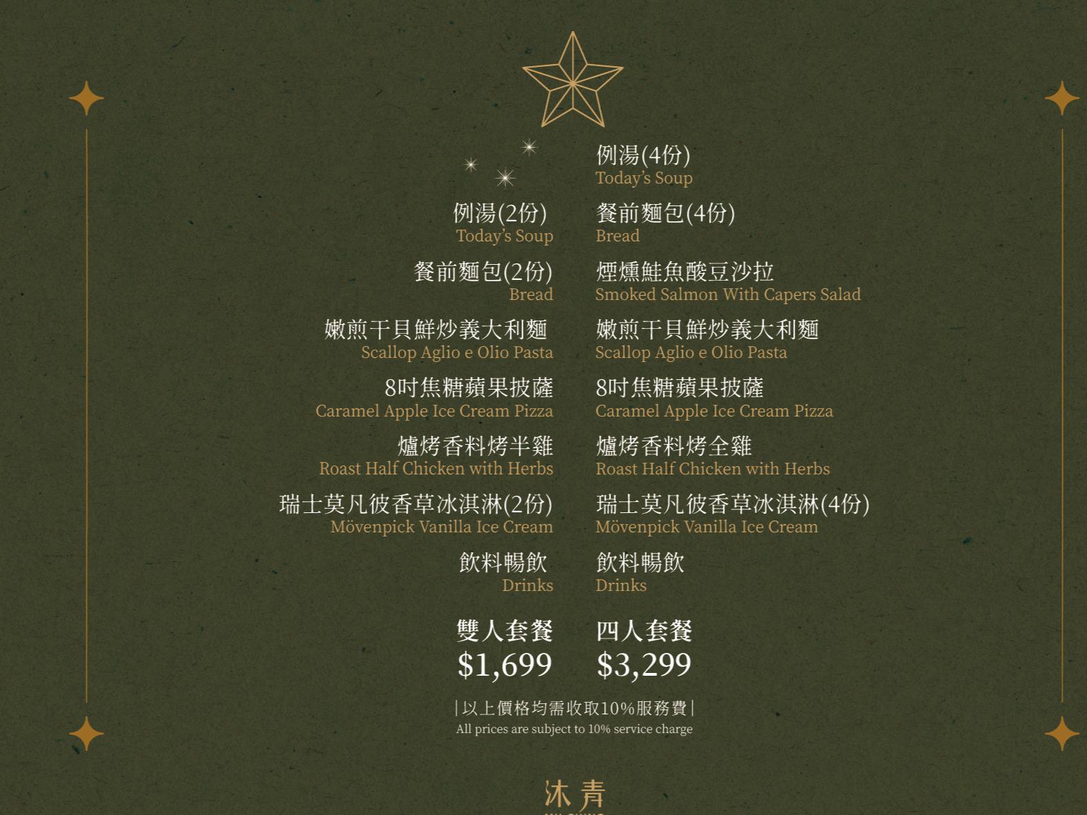 •此專案含早餐及沐青餐廳(聖誕大餐)及緩時光餐食(宵夜)依住房人數提供。