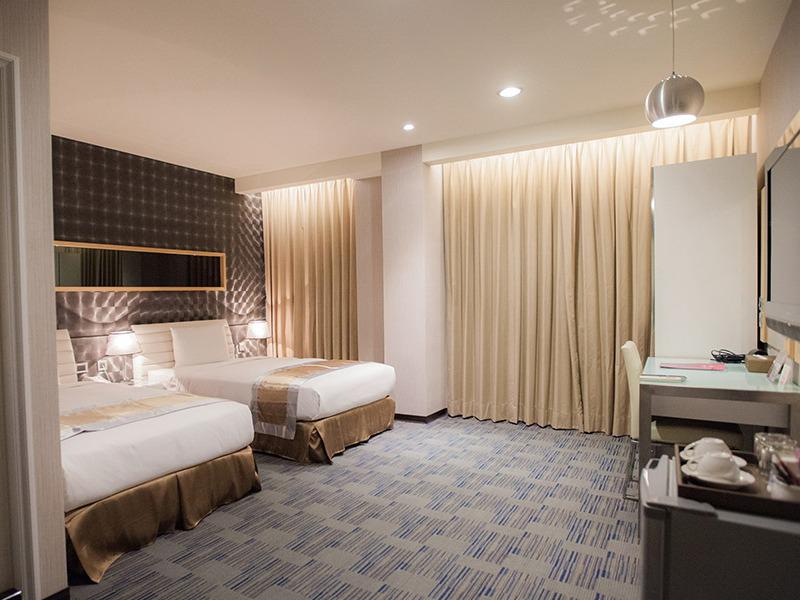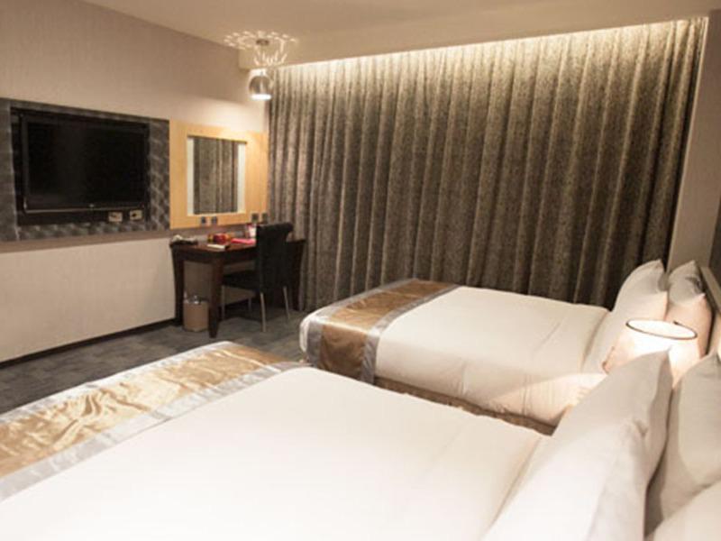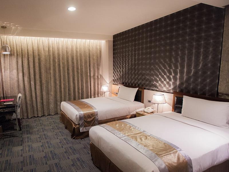 加大雙人床*1、液晶電視、吹風機、電子加熱壺、礦泉水、咖啡包、盥洗用具、乾溼分離衛浴、全館免費Wifi
