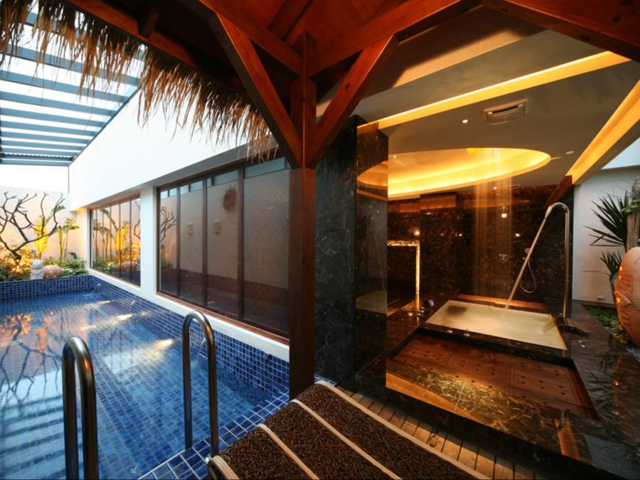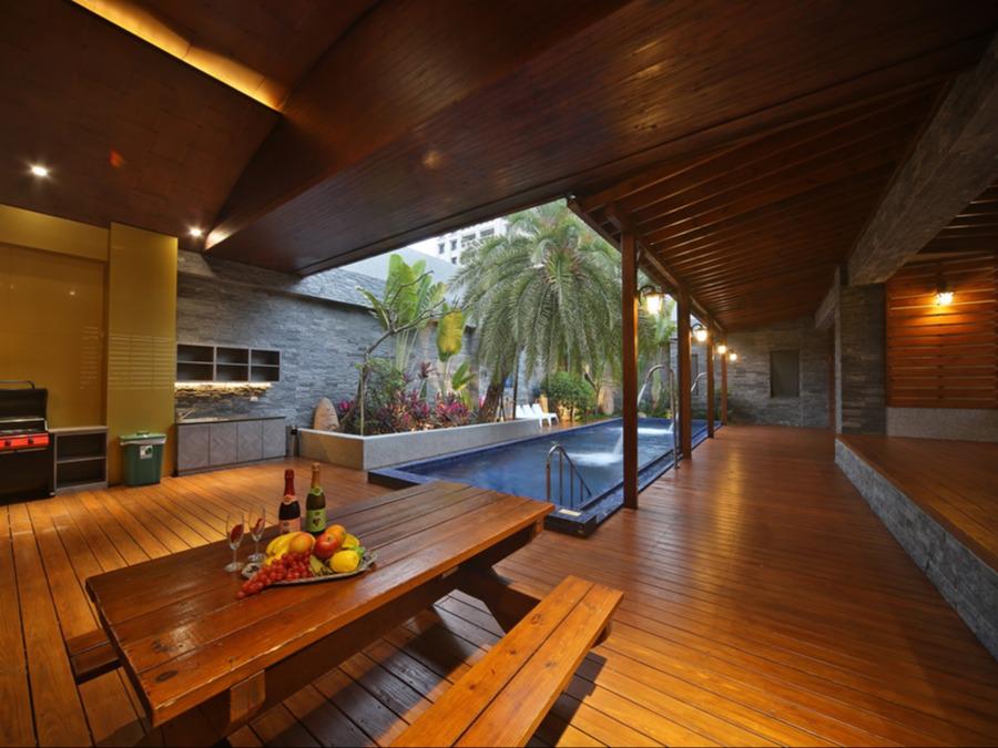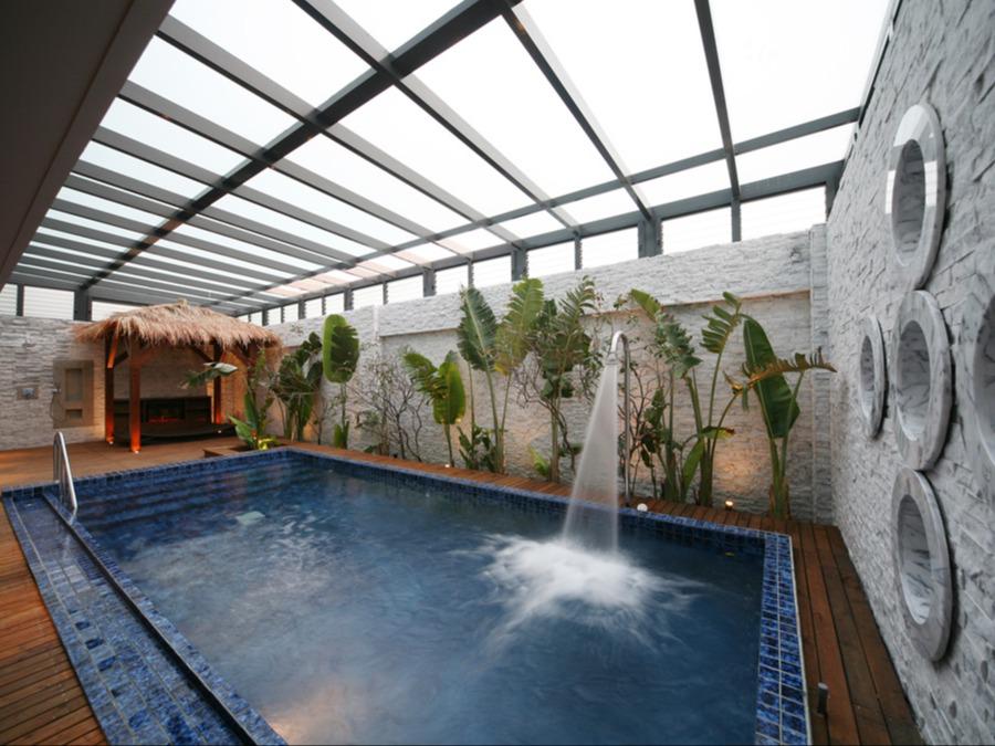 ♦超大戶外露天泳池、大型烤肉爐設備、大冰箱♦豪華大理石按摩浴缸、淋浴花灑.♦75吋液晶電視 + KTV、DVD 設備、VOD藍光隨選視訊系統♦免費上網(須自備電腦)♦免費中西自助式早餐兩客07:00~10:00♦mini吧檯(附餅乾點心、礦泉水、罐裝飲料、咖啡包、茶包各兩份)♦此房型附專屬一房一車庫+一泳池♦所有房型免費反針孔偵測