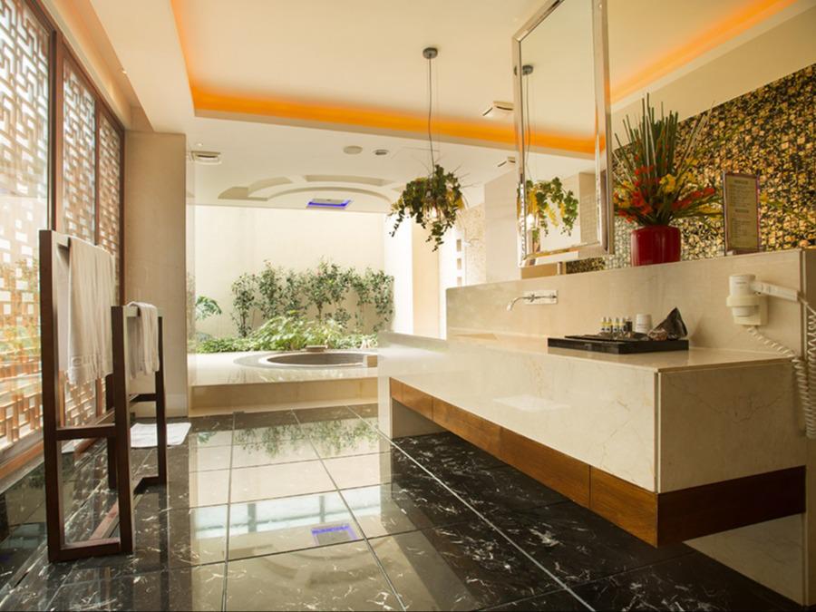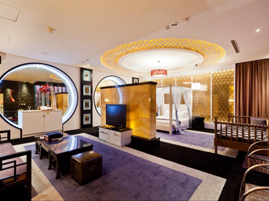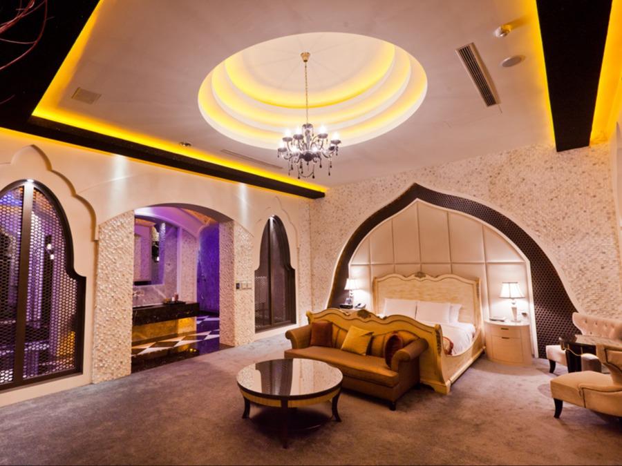 重金改造最適合舉辦派對烤肉房,金蔥與橘紅色系搭配的落地簾幕,暖黃燈光投射出悠然情調,彰顯您正處在流金歲月的珍貴。旋開華麗的水龍頭,空氣間即佈滿溫熱水氣以及浴缸中的花瓣香氣,輕柔地包裹住情人間的濃烈蜜意。在波光粼粼的水色與月光的嬉戲中,邂逅浪漫貴族的生活情境。