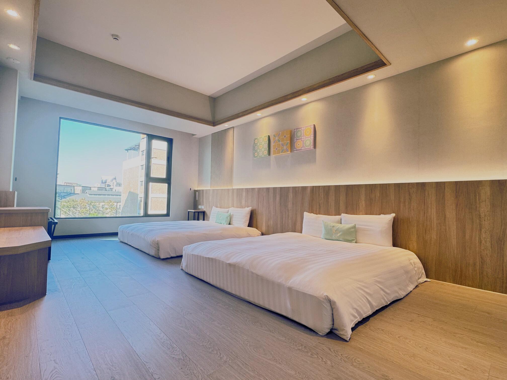 最多入住人數:3+1人 房型床數:2加大床 床型尺寸:180cmx200cm/每張 房間大小:10坪 / 33m² 窗戶:透明玻璃窗(非落地窗)