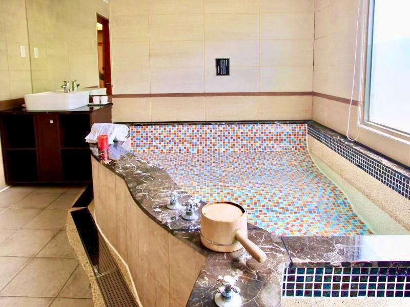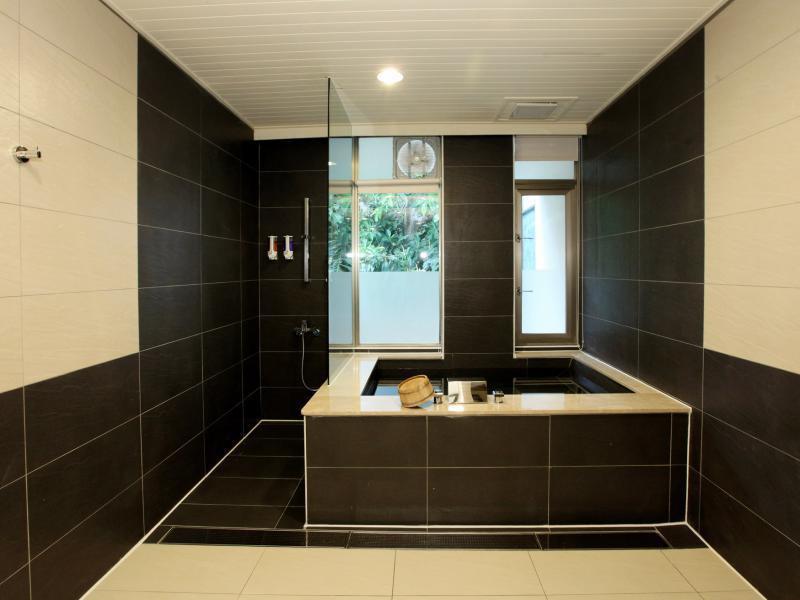 豪華套房規劃為一大床,浴室與客房空間為1:1,為使泡湯舒適,特別規劃冷熱雙池,讓您完全沉浸在泡湯冥想中