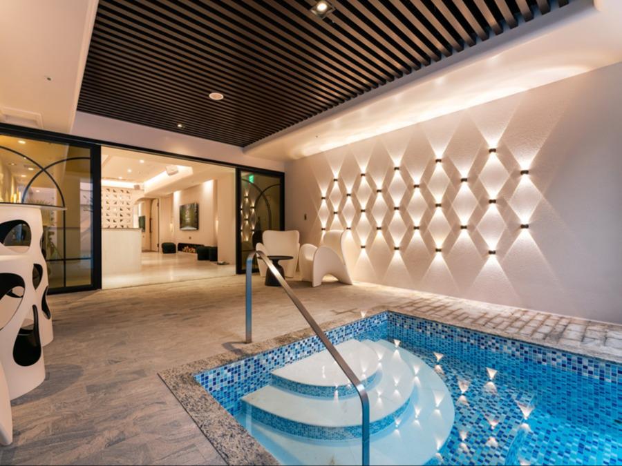 沐星套房以白色為室內風格主調 . 搭配柔和燈光 . 營造出簡約而優雅的情境空間。 景觀泳池配備獨立淋浴沖洗設備 . 專屬訂製沙發搭配KTV設備為入住貴賓提供質感優雅的住宿體驗 .