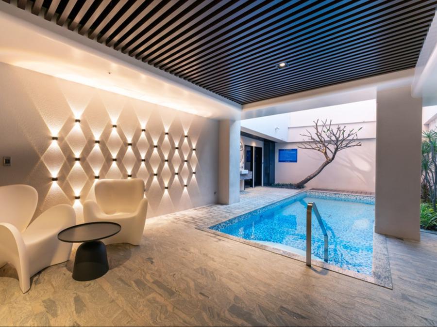 Villa 套房以樓中樓挑高設計,打造寬敞而具層次感的環境,結合獨立泳池、吧台區、KTV包廂與專屬會議空間,讓聚會不再受限於單一形式。